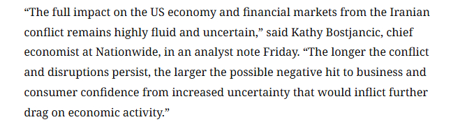 面对这一复杂局面,业内分析普遍持谨慎态度。Nationwide首席经济学家凯西·博斯扬西克指出:“伊朗冲突对美国经济和金融市场的全面影响仍充满变数。冲突持续的时间越长,对商业和消费者信心的负面冲击就越大,将进一步拖累经济活动。”