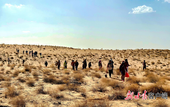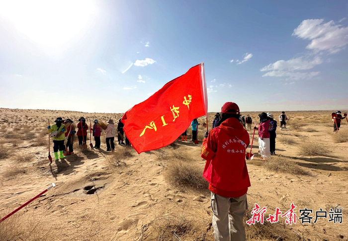 志愿者在栽植梭梭苗。本文图片均由新甘肃·甘肃日报记者 金奉乾摄