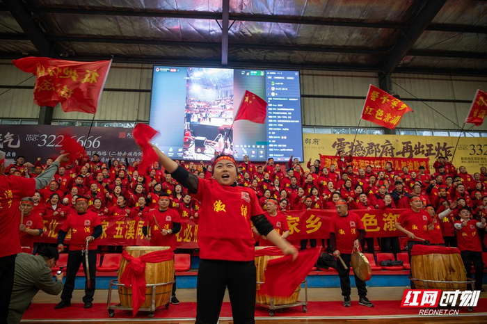 馆内呐喊声浪此起彼伏,球迷“阿木”激动地说:“虽然没有能进入到首战现场,但溆浦人的热血和团结早已燃爆全场。”当天,球迷们还自发设宴80桌,以球会友,大家齐聚一堂,用最地道的乡土方式,为每一位在外征战的健儿呐喊撑腰。