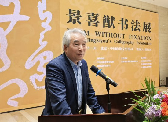 开幕式上,全国政协常委、副秘书长、民盟中央专职副主席、中国美协副主席吴为山,中国文联原副主席、吉林省政协原副主席、中国书协原副主席段成桂,中央美术学院院长林茂、吉林省政协副主席蔡国伟等先后致辞,对景喜猷在书法学术研究、艺术教育实践和地域文化传承等方面的贡献给予充分肯定与高度赞誉。认为景喜猷的书法创作,建立在严谨的传统法度之上,同时呈现出稳定而内敛的精神张力,观其整体气息,往往超出单一风格与技法的界限。在他的作品中,书法并不只是视觉对象,而是一种持续展开的认知过程。