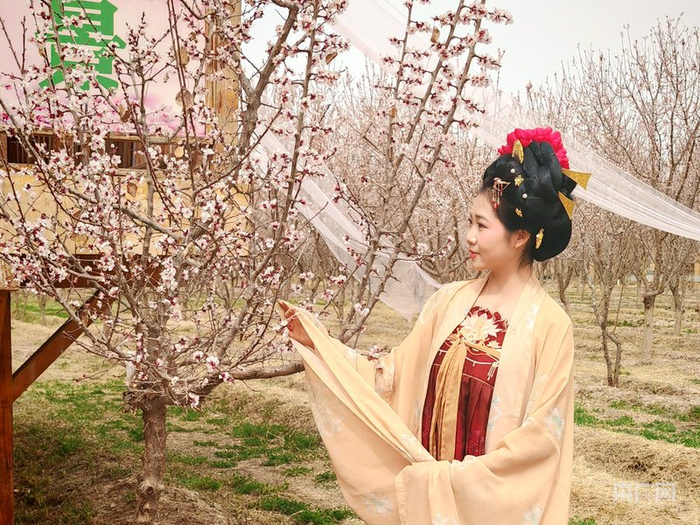 游客身着特色服饰在杏花林打卡 (央广网发 郑涛 摄 )