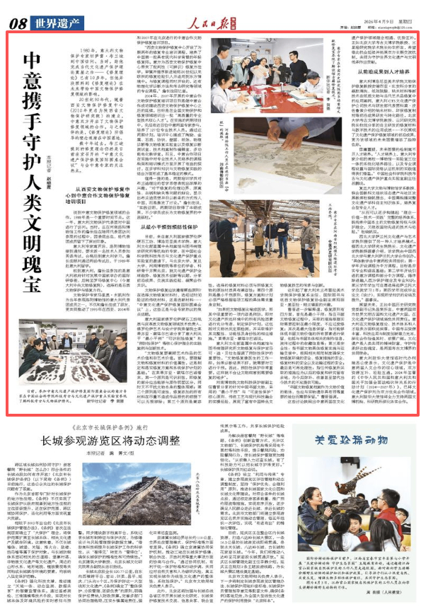 意大利驻华大使馆临时代办柯瑞思公使表示,文化遗产保护是中意两国人文合作的核心领域,双方资源互补、经验互通。2024年签署的《中华人民共和国和意大利共和国关于加强全面战略伙伴关系的行动计划(2024—2027年)》,已将文化遗产保护列为双方优先合作领域。意大利驻华大使馆将全力支持两国文博机构、科研院所深化务实合作。(本报记者 赵晓霞)
