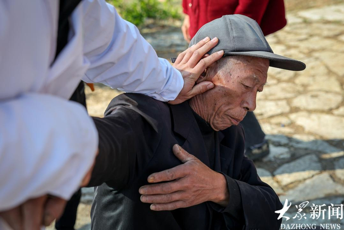 卫生院的中医窦传胜给老人们捏肩揉背,一边揉一边教:“平时在家没事就揉揉胳膊腿,能舒服点。”