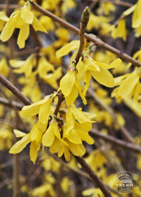 紧随冰凌花的脚步,最近两天,连翘也进入了盛放期。在南湖公园、长春德苑等地,连翘已次第绽放。