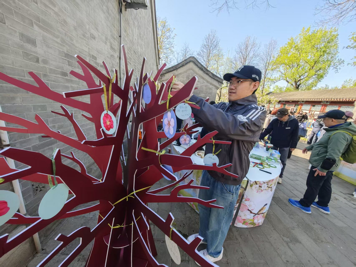 通过“园来京彩花园城市大富翁”,市民游客化身小动物朋友,在以颐和园桂花、北海菊花、中山郁金香等标志性花卉绘就的诗意画卷中悠然漫步,通过趣味互动解锁公园文化密码。颐和园现场讲解摇蚊的生态价值;天坛公园开展聆鸣辨雀,巧手拼插活动;香山公园观察古树年轮与树洞实物,普及养护知识;国家植物园结合桃花开展科普问答并悬挂主题挂件;玉渊潭公园依托“小樱”IP,带领游客探秘樱花与湿地生态;路县故城遗址公园解码汉代五谷源流,让游客沉浸式体验传统草木生活。