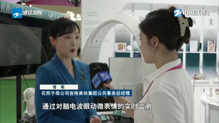 花西子母公司宜格美妆集团公共事务总经理 曾敏:通过对脑电波眼动微表情的实时监测,实现对产品感官的定量和定性分析,能够把复杂的脑电数据转化为消费者易懂的个性化的体验报告。