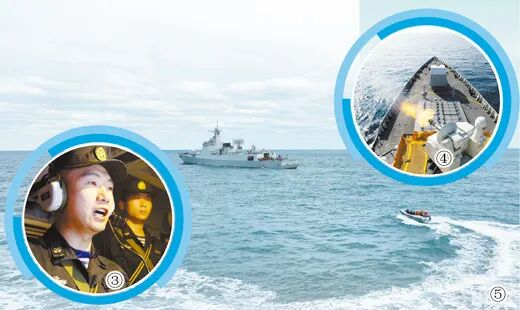 包头舰官兵立即启用多种观察手段监视目标,并与“如意松”号调整阵位,将其与可疑船只隔开。