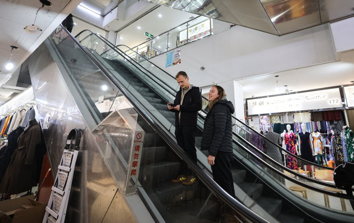 市场汇聚了约285家店铺,以“前店后厂”模式提供从面料甄选到西装、旗袍、礼服、日常穿搭的一站式定制服务,部分商铺也售卖成衣,品类十分齐全。顾客可沉浸式参与选料、设计全流程。而免签政策的落地与邮政服务的入驻,更让这里成为外国游客的热门打卡地,支持成衣直寄全球170多个国家和地区。
