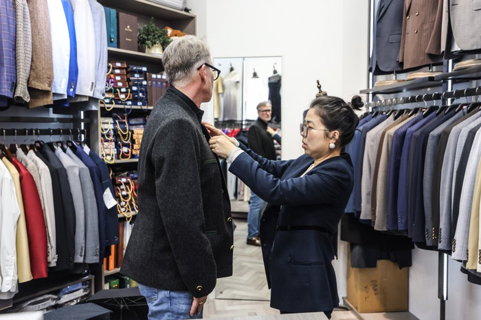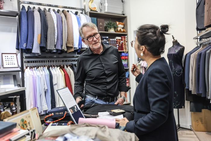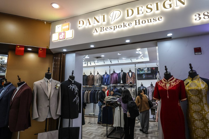这种“高性价比+快交付”的独特模式,经口碑发酵迅速在国际游客中走红。如今,这里外国客户占比已超50%,部分热门店铺更高达70%。不少游客拖着行李箱慕名而来,人均消费约2万元。正如一位美国游客所言:“就像你们去欧洲带巧克力一样,我们来中国,一定要带一套这里定制的西装。”