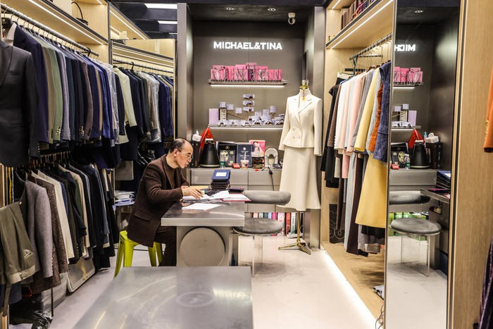 毛永康位于南外滩轻纺面料市场内的定制工作室。