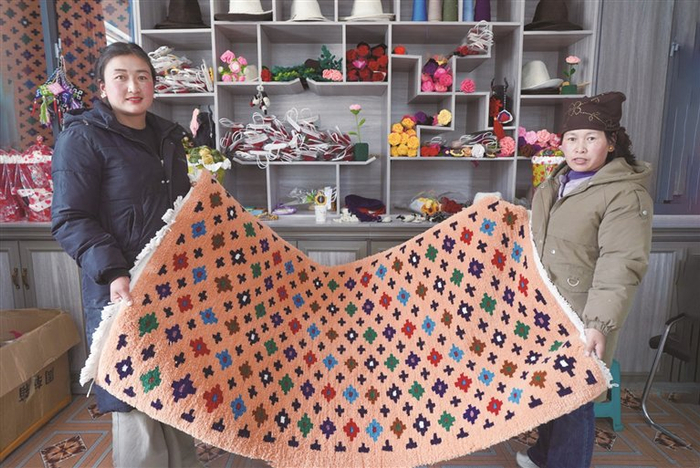 在拉萨市林周县松盘乡岗巴村的岗坝妇女手工编织农民专业合作社内,处处暖意融融、生机勃发。阳光透过玻璃窗洒满工坊,落在一张张专注认真的脸庞上,经纬交错间,承载着藏乡古朴文化的藏毯纹样在指尖徐徐舒展;手工毡帽质地温润厚实,特色卡垫色泽浓郁鲜亮,崭新精巧的编织花束与柔软围巾错落摆放。
