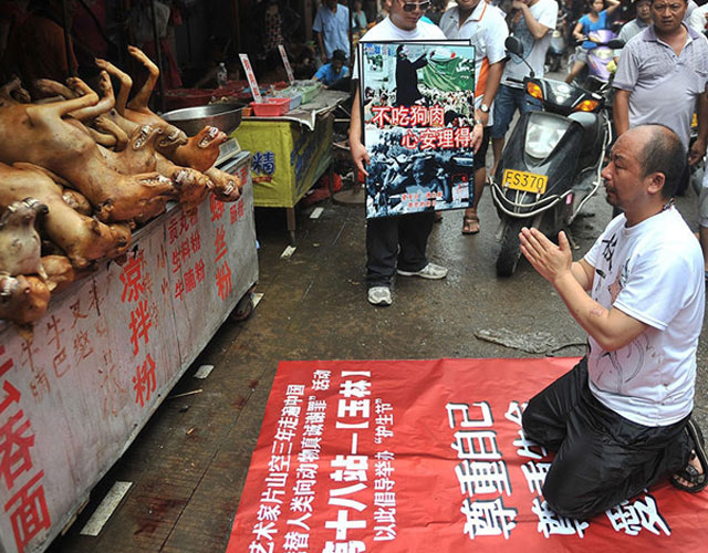 但也有人通过夸张的行为艺术抵制吃狗肉